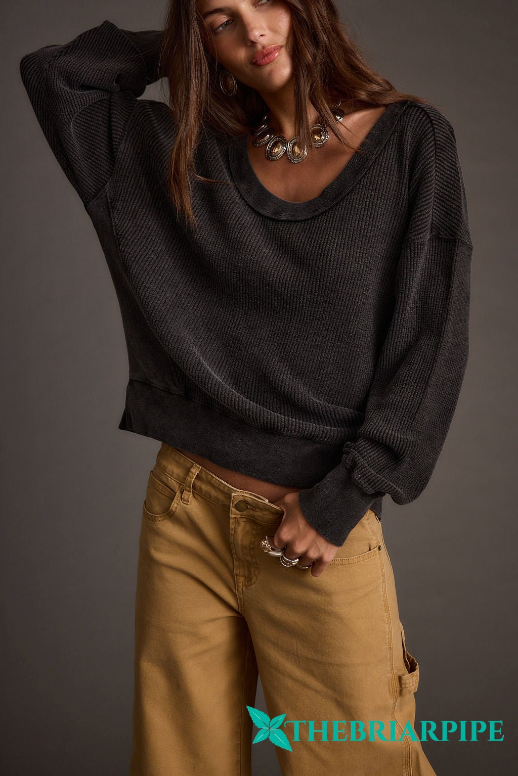 Not Your Ex's Washed Black Waffle Knit Top